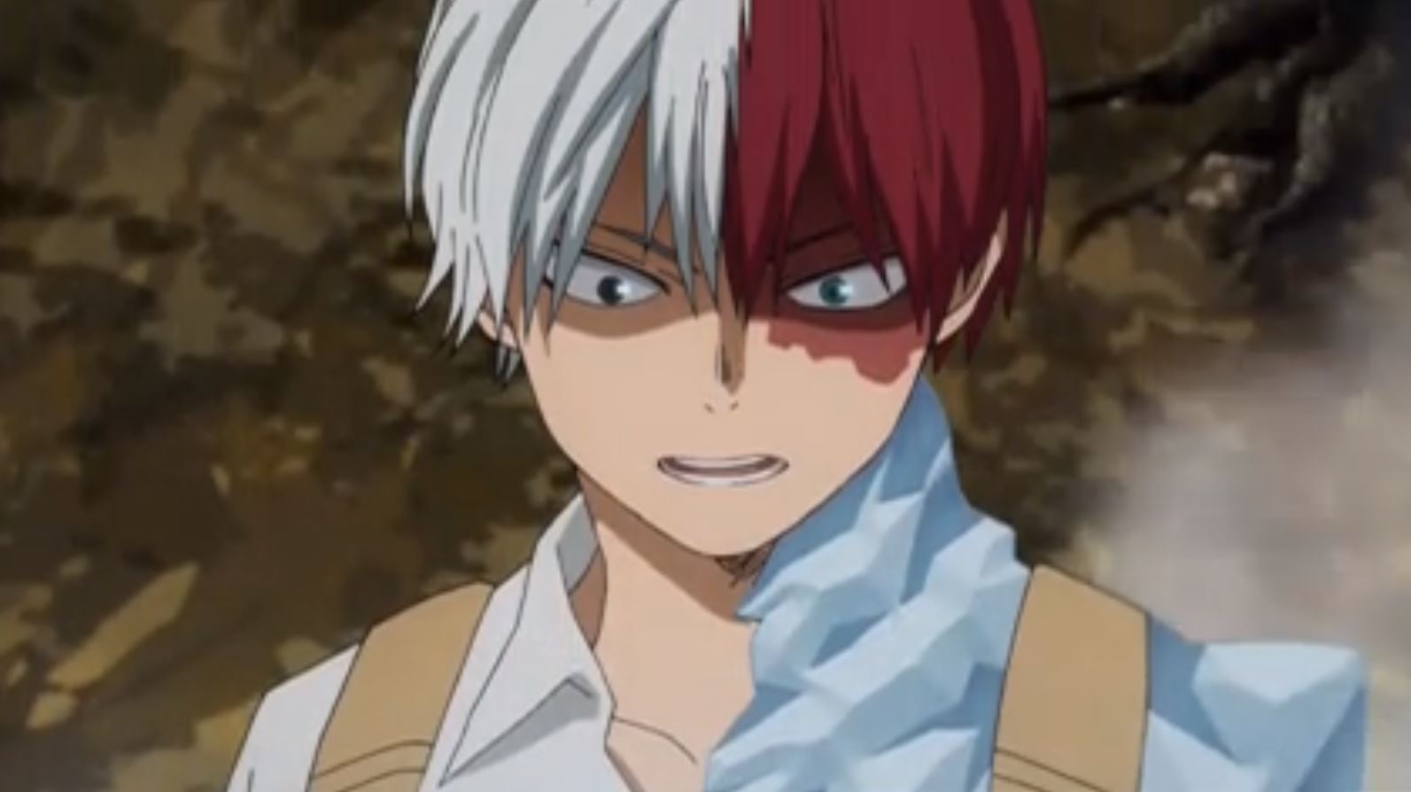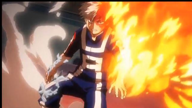 体育祭で出久とぶつかり合う轟くん。父親への恨みから「炎」の個性を封印し「氷」だけで戦っていた。